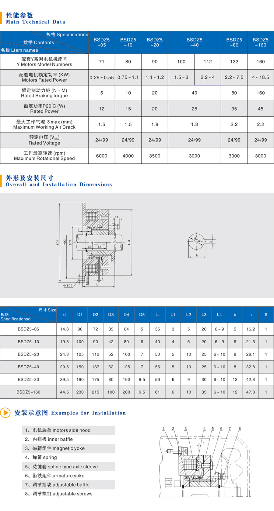 BSDZ5係列幹式單片通電型製動器。該產品結構簡單,製動延遲時間短、製動力矩大。
